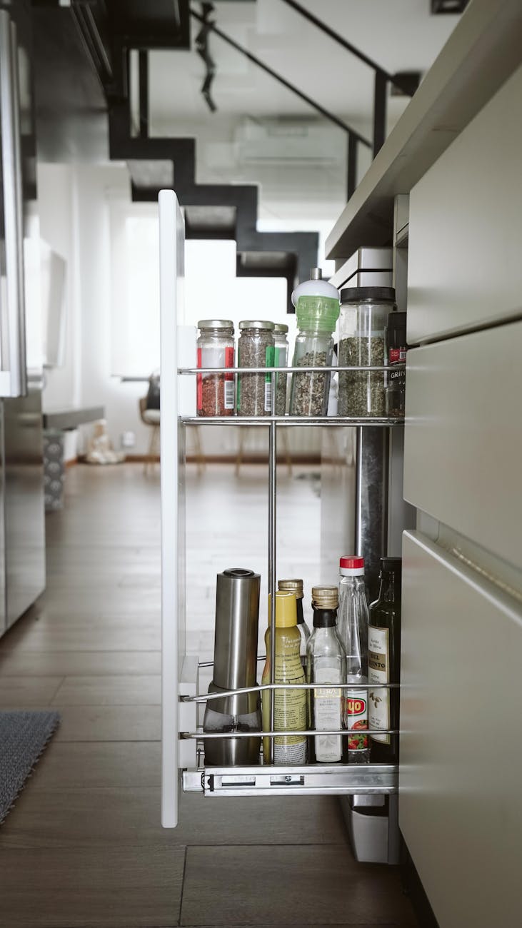Food – Not everyone has the luxury of a pantry in their home… I know I don’t. This makes the idea of storing Food in your home a more pertinent issue than most think. While you can definitely just use your cabinets are they are to stash your goods, things like spice shelves, organization bins, plate stackers/organizers, or even reusable stackable storage bin kits can make the cabinetry feel more custom and more functional while you’re whipping up dinner.